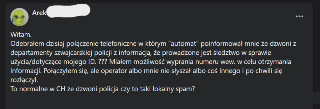- Zasada bezpieczeństwa: Szwajcarskie urzędy komunikują się listownie (pocztą tradycyjną). Jeśli otrzymasz podejrzany telefon – rozłącz się. Nigdy nie podawaj numeru AHV ani danych karty płatniczej przez telefon lub linki z SMS-ów.